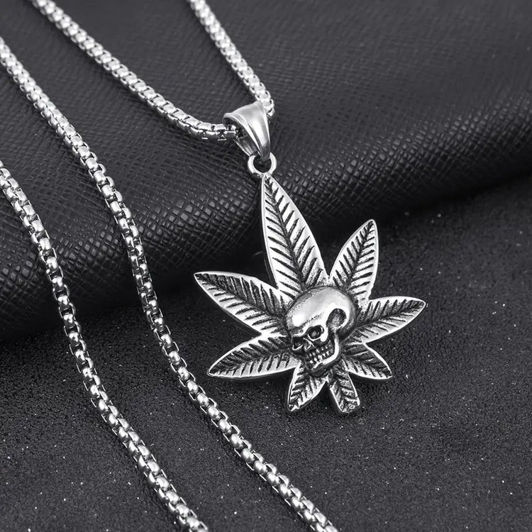 1pc Men's Stainless Steel Hip Hop Maple Leaf Necklace