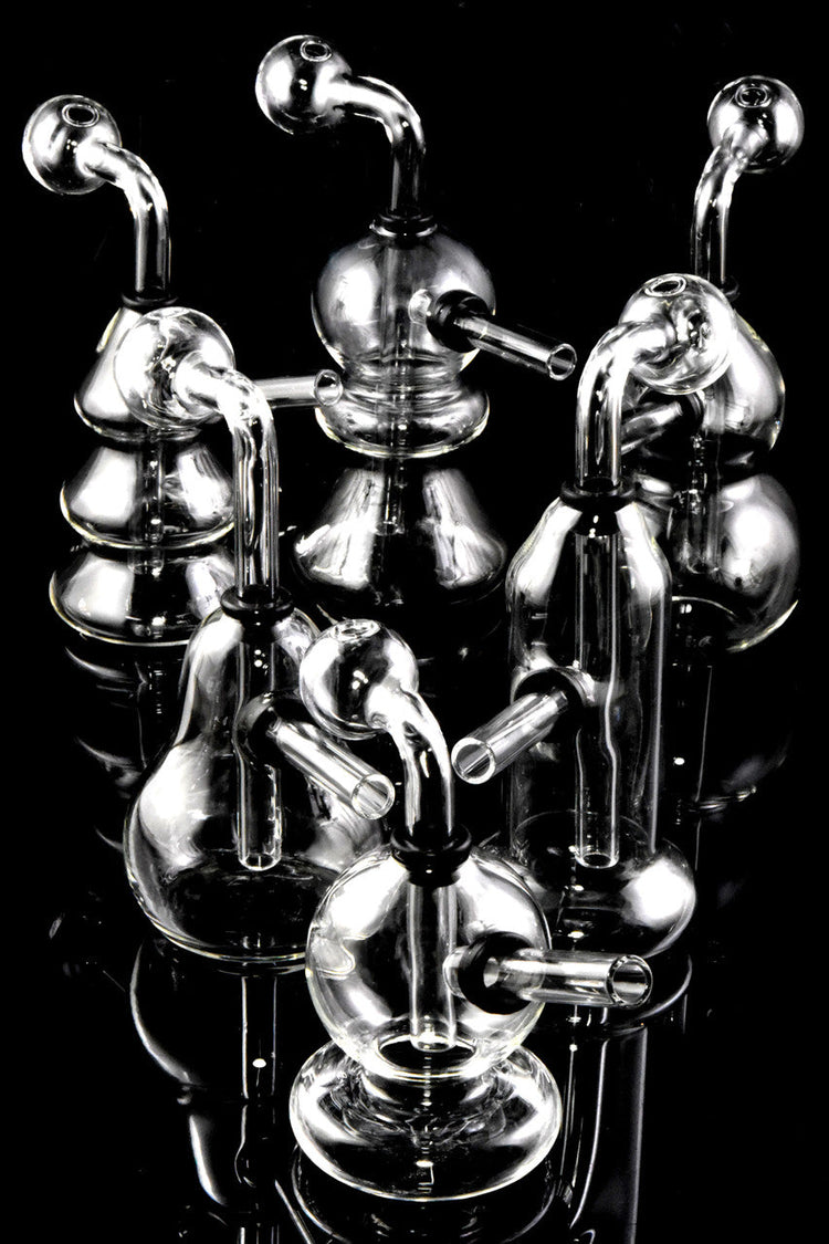 Small Clear Glass Bottle Oil Burner Bubbler Rig with Sticker Decal
