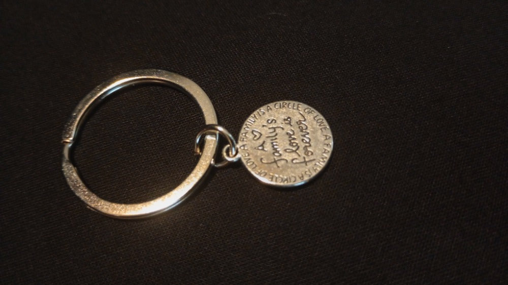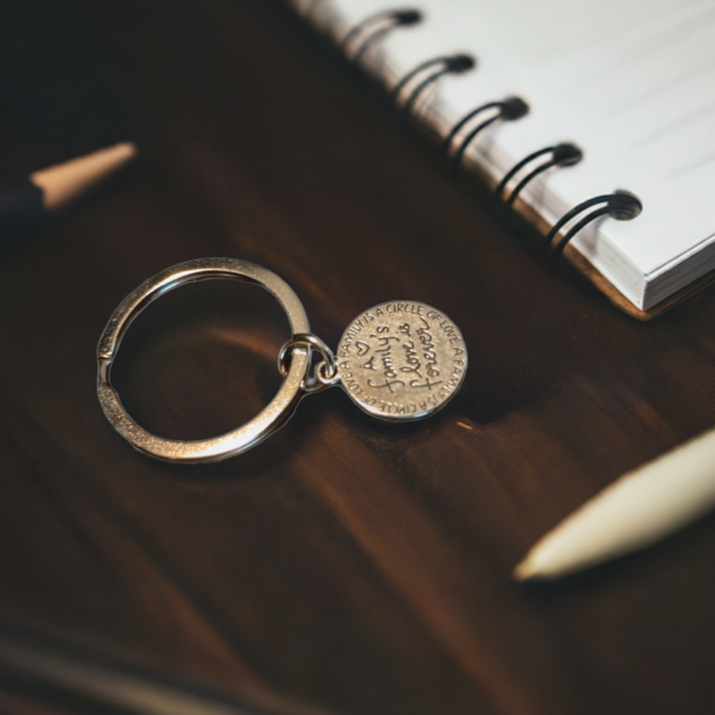A Family's Love Is Forever metal keychain.